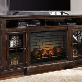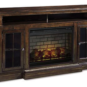 Roddinton Dark Brown TV Stand w/ Fireplace
