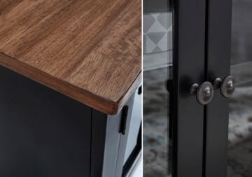 - Made with hardwood solids, mango wood veneer and MDF substrates