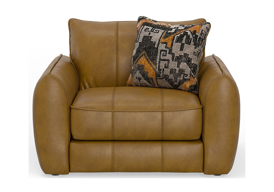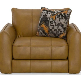 Bring warmth and modern charm to your living room with this luxurious Living room Series. Upholstered in rich camel-toned Genuine Top Grain Leather! Comfort Coil Seating featuring Comfor-Gel, bold accents, and curved arms for stylish comfort that elevates any contemporary space.