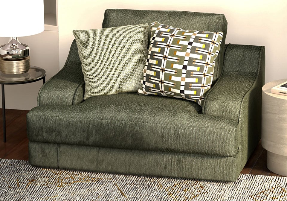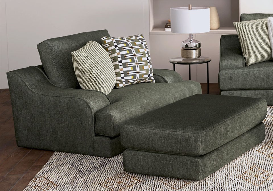 This king-size scale Series delivers spacious relaxation with coil-spring seating and a plush cuddler cushion for ultimate comfort. Upholstered in soft, durable chenille, it features steel-tech framing for lasting strength and a stylish correlating pillow package to complete the look