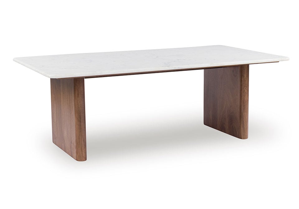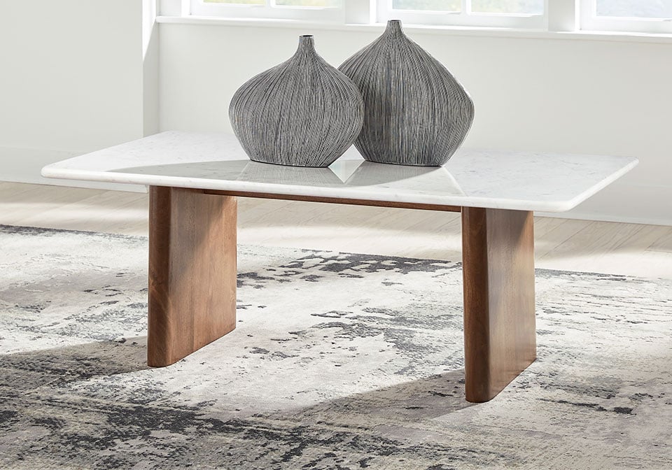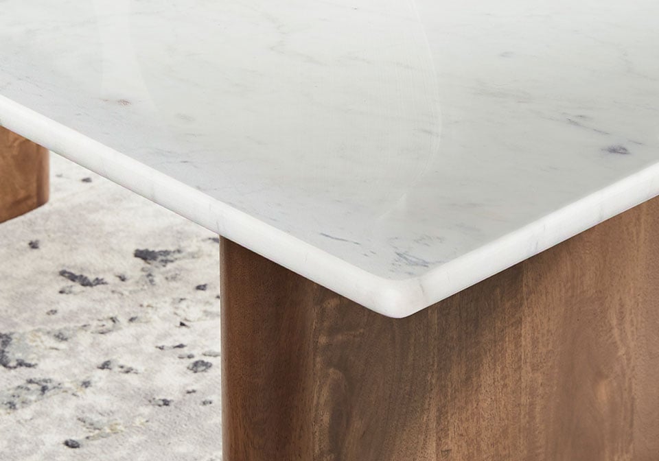 With its back-to-nature sensibility, the Isanti coffee table is a natural fit for outfitting your modern living area. Its clean-lined design lets the beautifully organic quality of the mango wood shine through, complemented by the sleek refinement of a marble top. This table is the ideal spot for snacks, beverages and that stack of unread books.