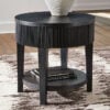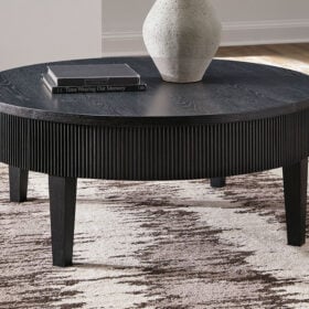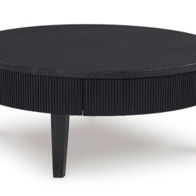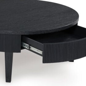 Classic and cool in dark charcoal, this coffee table brings contemporary convenience to your living room. Short on storage? The trendy reeded apron conceals a drawer perfect for remotes, controllers and other entertainment accessories. What a perfect marriage of style and functionality.