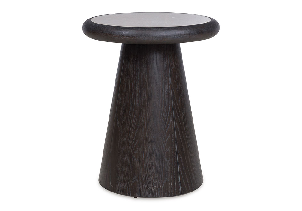 Rustic style. Refined design. This end table expertly marries a clean-lined silhouette with natural materials. Crafted with an elegant marble inlay top, it’s loaded with both homespun charm and contemporary flair. And with its versatile French black finish, this table effortlessly elevates casual aesthetics.