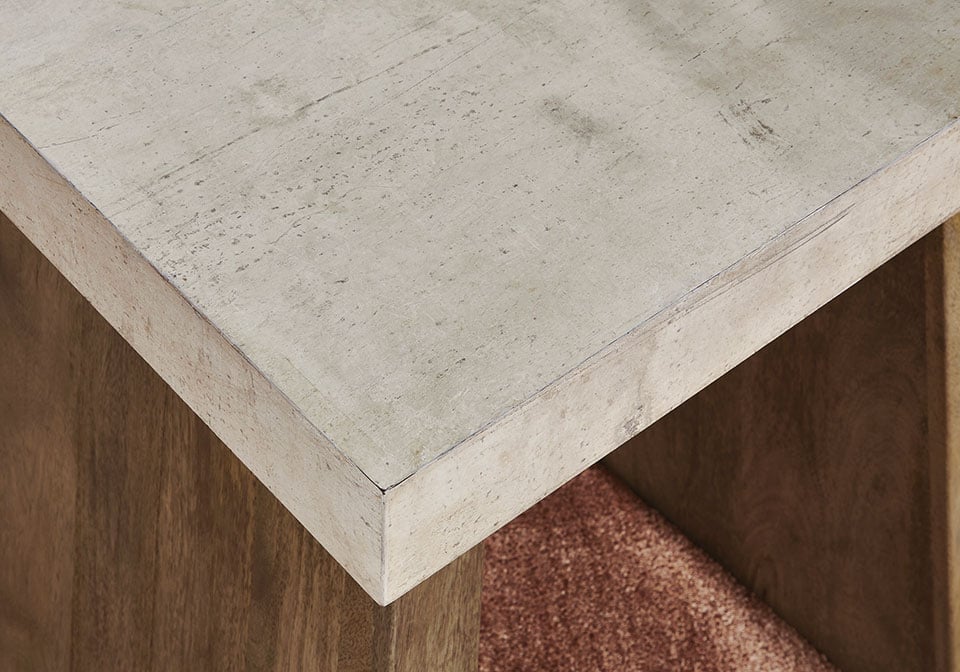 This end table captures the essence of today’s casual contemporary style. Its generous faux cement tabletop, supported by a double plinth base, is a masterclass in modern design. Talk about a casually cool spot for decor, drinks or both.