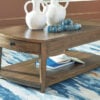 Serving up transitional style at its best, this striking end table looks equally at home in traditional and modern settings. Its classic brown finish merges effortlessly with a softly rounded top and tapered legs for a timeless, contemporary vibe. A lower shelf beautifully accommodates baskets, magazines, plants and more, while the handy drawer keeps entertainment essentials close by.