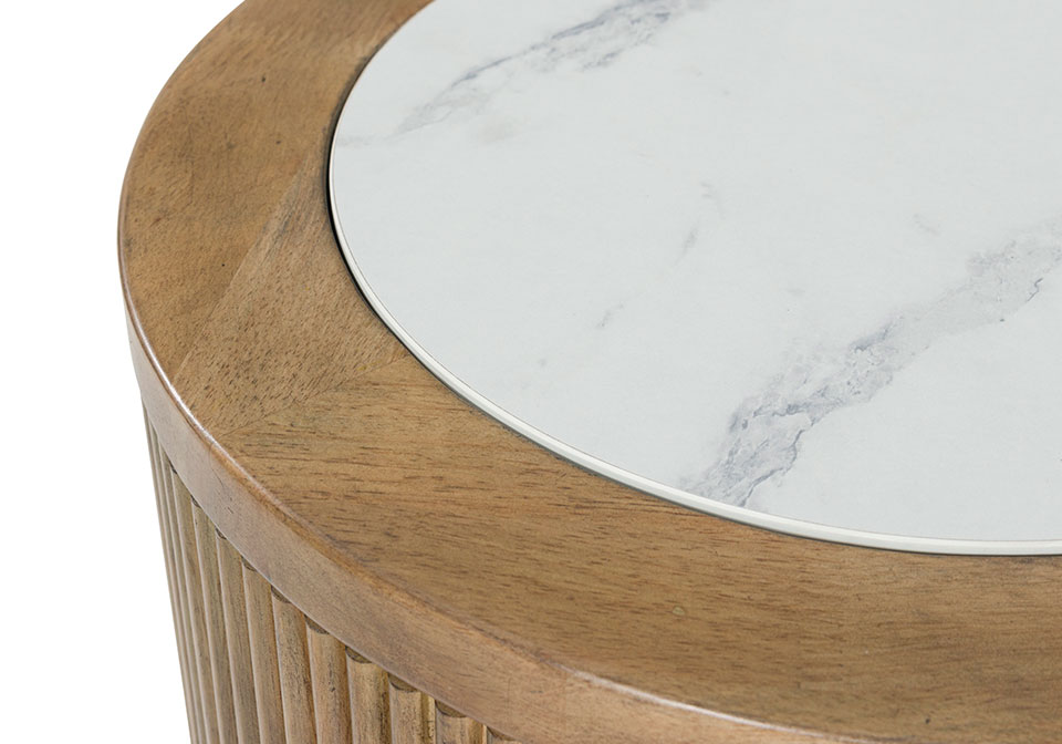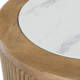 Elegance meets earthy charm in this end table. Crafting a contemporary living room? The faux Carrara marble top expertly pairs with the reeded base for a trend-right take on day-to-day function. It’s an ideal spot to rest remotes, a drink or small decorative accents.