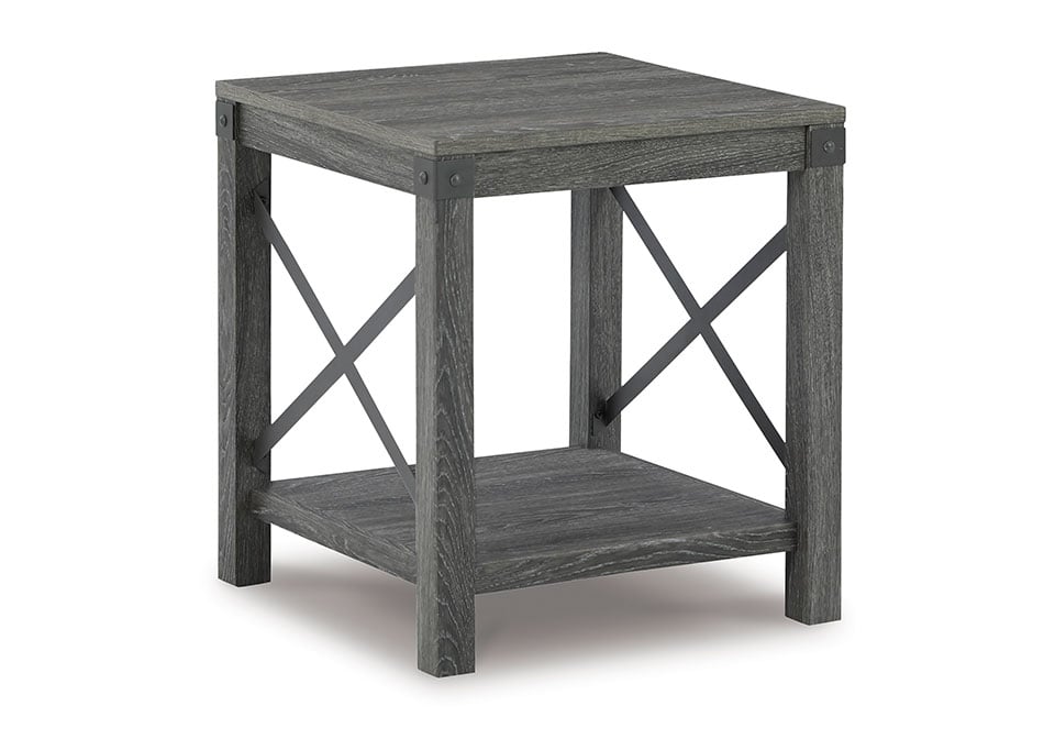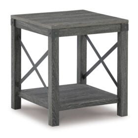 Open the door to modern farmhouse style with this square end table. The beautiful woodgrain look and classic crossbuck metal accents are a cool touch, while the lower shelf provides surface space for fashionable home accessories.