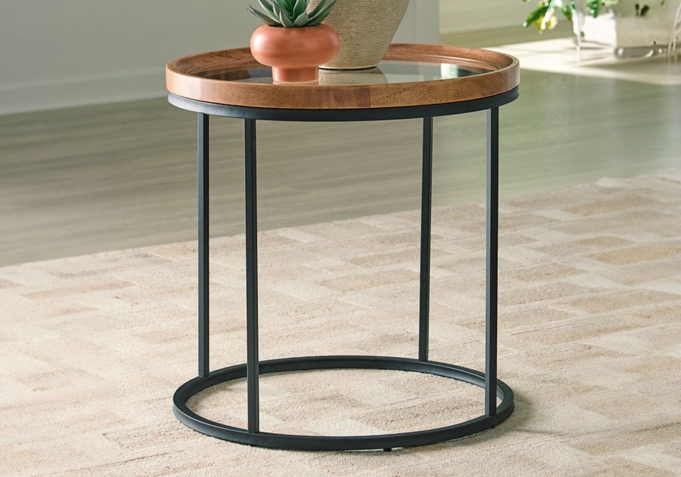 Looking for modern style without the designer price tag? You’ll love the Noraluna occasional set. A sleek metal base pairs effortlessly with a warm wood-trimmed top and glass insert, creating a clean, balanced look that’s durable, versatile, and easy to live with in any space