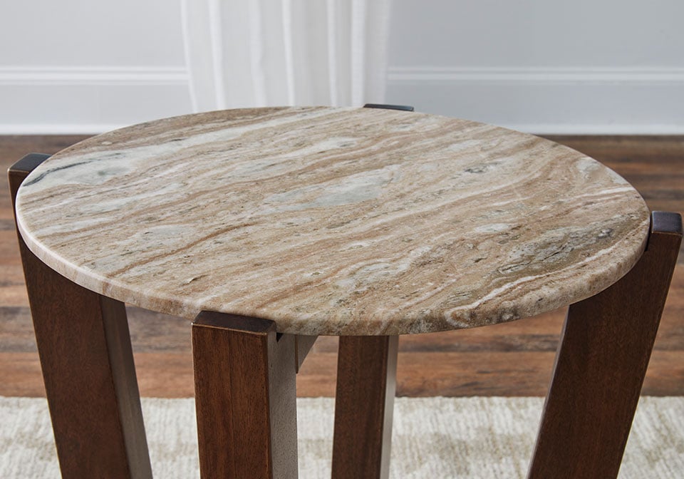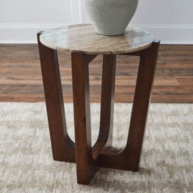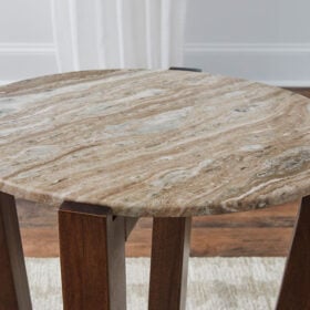 Not only does this stunning Tanidore end table enhance the aesthetic of your home, but it also provides practicality and functionality. Crafted with a mango wood frame and natural marble top, its solid construction and durable materials ensure years of reliable use. It’s the perfect blend of contemporary style and timeless elegance.