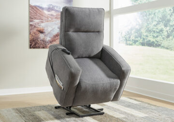 Blending beautiful style and comfort, this power lift recliner does all the work for you. The gentle lift-and-tilt feature eases you to your feet from a sitting position or fully reclined. And with its high-performance Next-Gen Nuvella™ fabric, cleaning spills is a breeze. Ready to relax? Simply press a button to discover your ideal reclining, heating and massage settings. This piece is an on-trend addition for modern spaces.