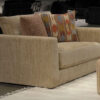 Soft, durable beige fabric upholstery. Clean, modern silhouette with low arms. Plush, deep seating for ultimate comfort. Vibrant, multi-pattern accent designs. Sturdy Steel frame for lasting support. Versatile neutral tones complement any décor.