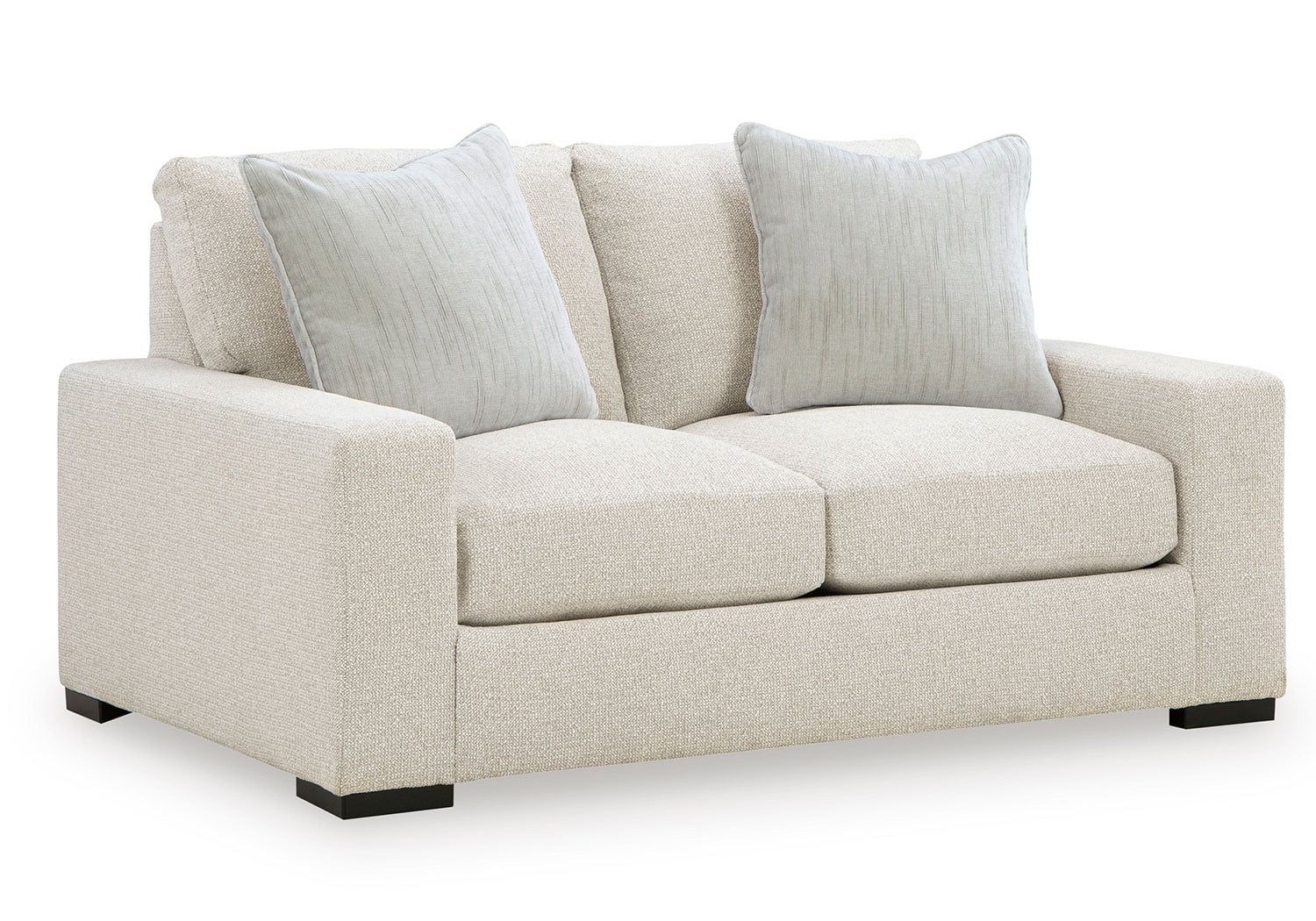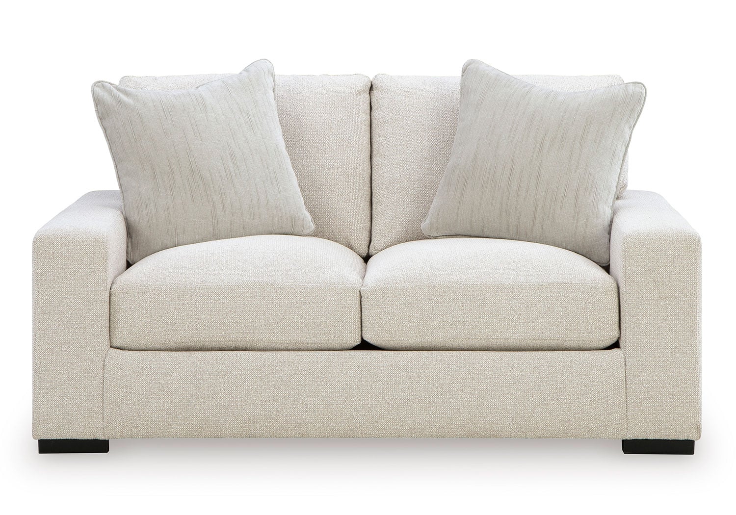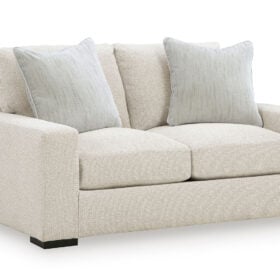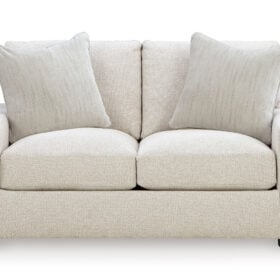 Reinforced frame provides added stability. Reversible seat and back cushions. High-density foam cushions wrapped in feather-fiber blend jacket. Pillows with feather-fiber blend. Polyester upholstery. Non-skid, low-profile accent legs with faux wood finish. Platform foundation system resists sagging 3x better than spring system after 20,000 testing cycles by providing more even support. Smooth platform foundation maintains tight, wrinkle-free look without dips or sags that can occur over time with sinuous spring foundations.