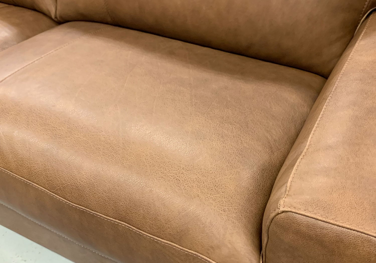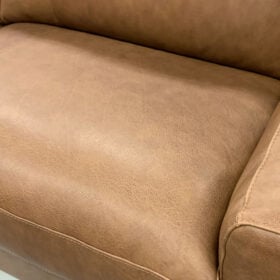100% Genuine Italian Leather, Luxuriously soft and durable, made to age beautifully with time. Pecan Brown Color A warm, earthy tone that works effortlessly with a variety of palettes. Track Arms Adds a clean, streamlined look without sacrificing comfort. Wood Legs Offers a sturdy base and a touch of modern contrast. Italian Craftsmanship. Made in Italy by skilled artisans using the finest materials. Due to its natural origin, real leather can show individual characteristics such as healed scars, growth marks, grain variation and shade variation. Natural variations make each hide unique and do not detract from the wearing qualities of leather.