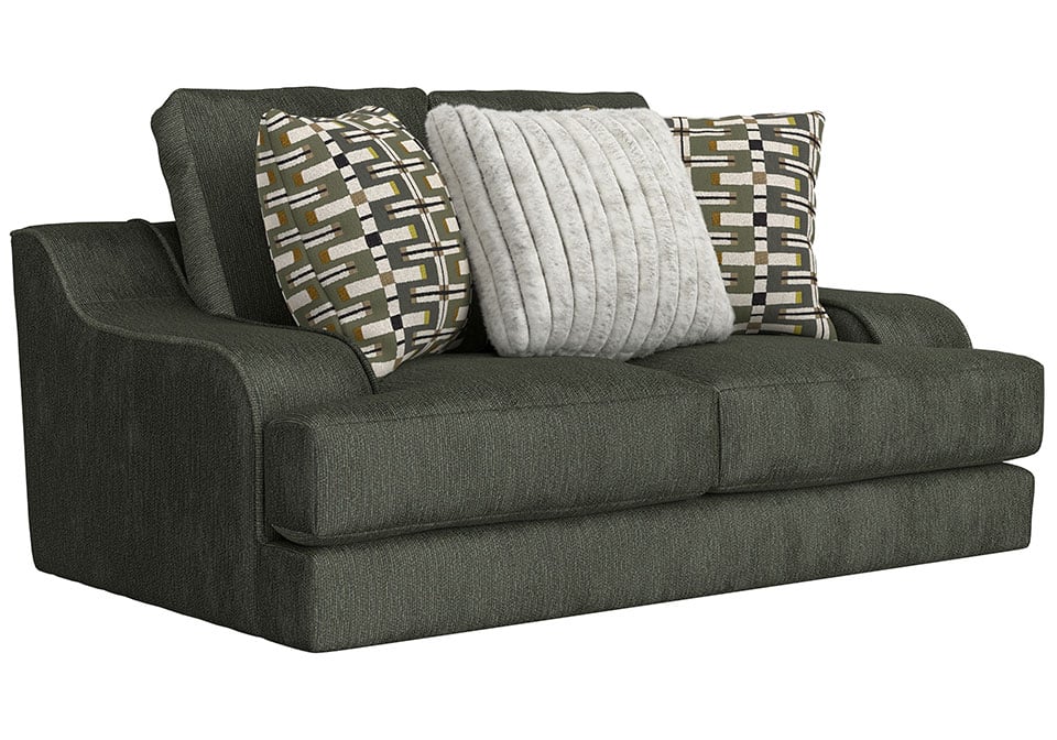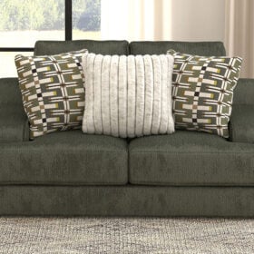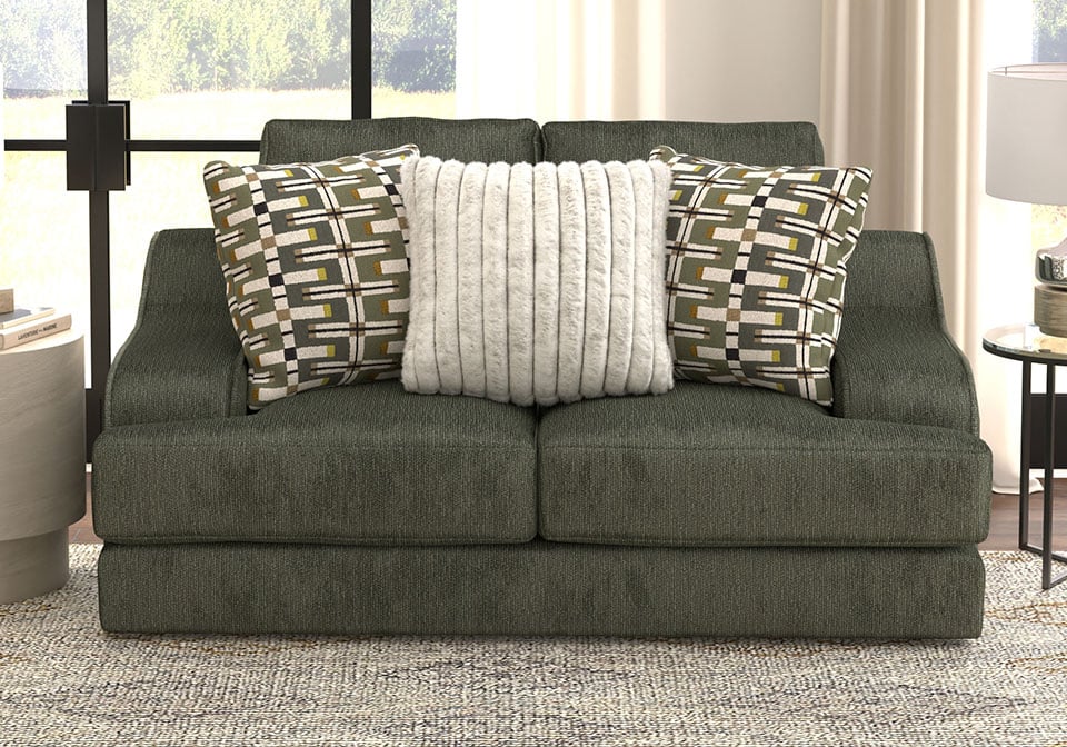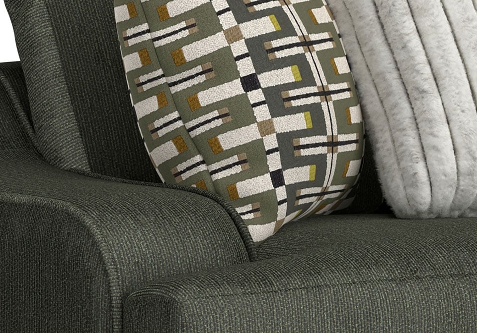This king-size scale Series delivers spacious relaxation with coil-spring seating and a plush cuddler cushion for ultimate comfort. Upholstered in soft, durable chenille, it features steel-tech framing for lasting strength and a stylish correlating pillow package to complete the look