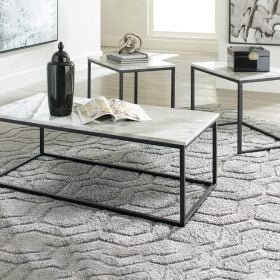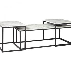 Casual contemporary design with a modern style attitude. Bunching table design for small space living solutions. Tops feature a faux Carrara marble laminate with engineered wood substrate. Tubular metal frames finished in a durable powder coat. T182-13 end table dimensions: 25″W x 18″D x 20″H.