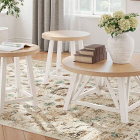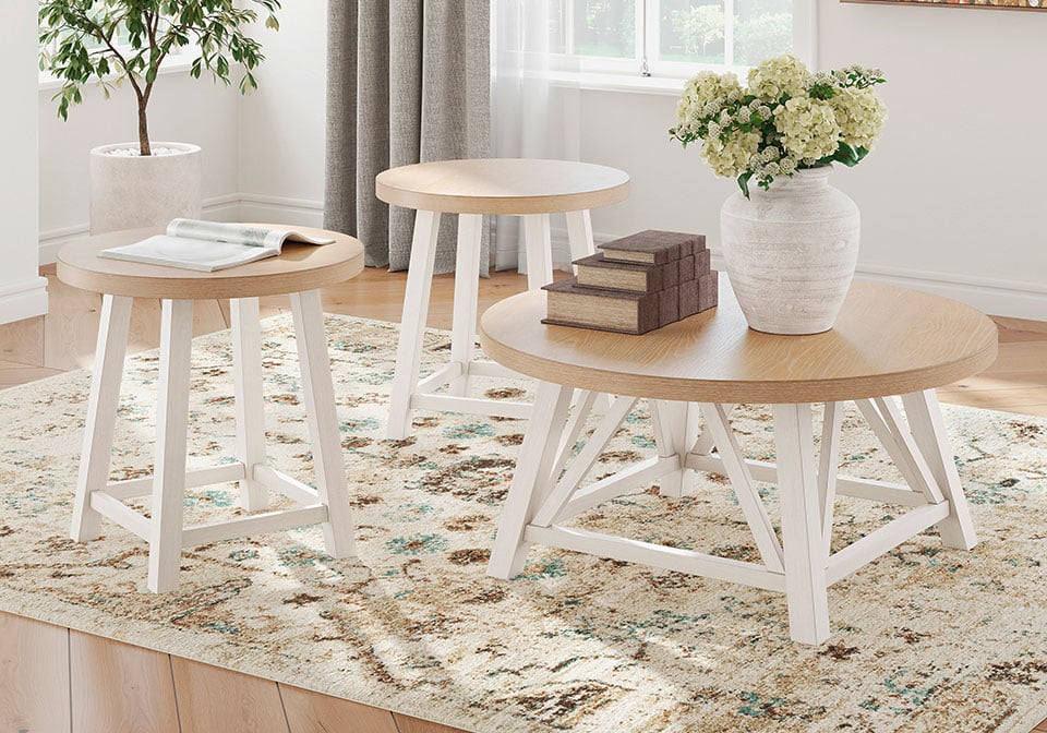 Invite easy-breezy style in with this occasional table set. Complete with a coffee table and matching end tables, the stylish two-tone set fits right into modern farmhouse and coastal settings. Simply stage and arrange around your existing furniture—their rounded design pairs well with smaller sofas and sectionals, so you can make the most of your space.