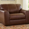Corner-blocked frame.Firmly cushioned. High-quality foam cushion wrapped in poly fiber. 100% top grain leather covers the cushion top; skillfully matched faux leather covers the remaining areas. Due to its natural origin, real leather can show individual characteristics such as healed scars, growth marks, grain variation and shade variation. Natural variations make each hide unique and do not detract from the wearing qualities of leather. Non-skid, low-profile accent legs with faux wood finish.