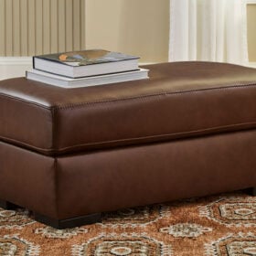 Effortlessly stylish, indulgently comfortable. This ottoman encourages everyday relaxation with an invitingly plush, spacious cushion. It embodies affordable luxury, pairing the sleek appeal of top grain leather with expertly matched faux leather. Suiting spaces from casual to contemporary, the ottoman’s universal appeal makes staging your space nearly effortless.