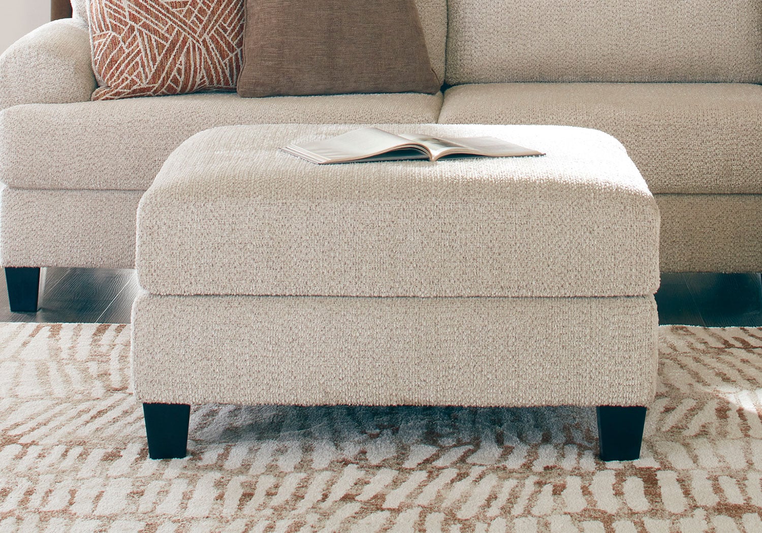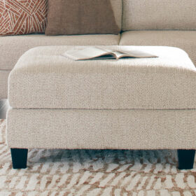 This oversized accent ottoman incorporates a fresh, transitional feel into your decor. A generously padded cushion and super-soft chenille fabric in a versatile neutral invite you to kick back and relax. Finished with tapered legs, this ottoman effortlessly suits casual spaces.