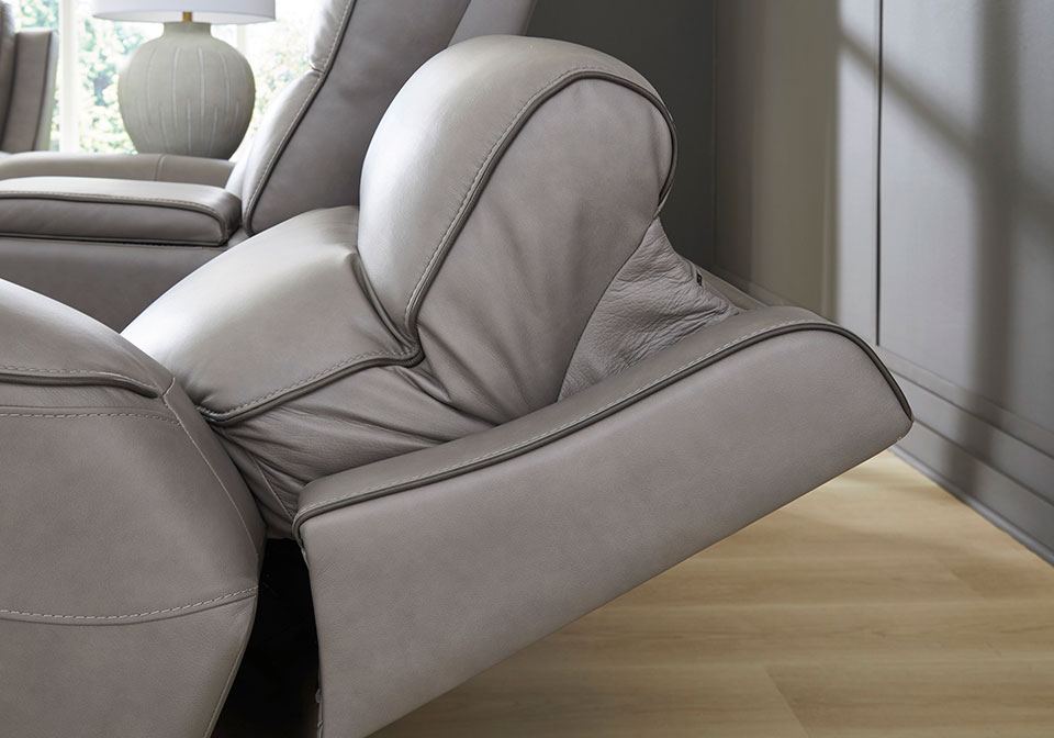 Relax like never before. This power recliner is crafted with luxury in mind, complete with supple top-grain leather in the seating area. With chic tailoring and stylish welting, it creates a sophisticated presence and makes a lasting impression. And when you’re ready to be pampered, indulge in the recliner’s adjustable headrests, heated seats and air massage, all at the touch of a button. Chill time just got a whole lot sweeter.