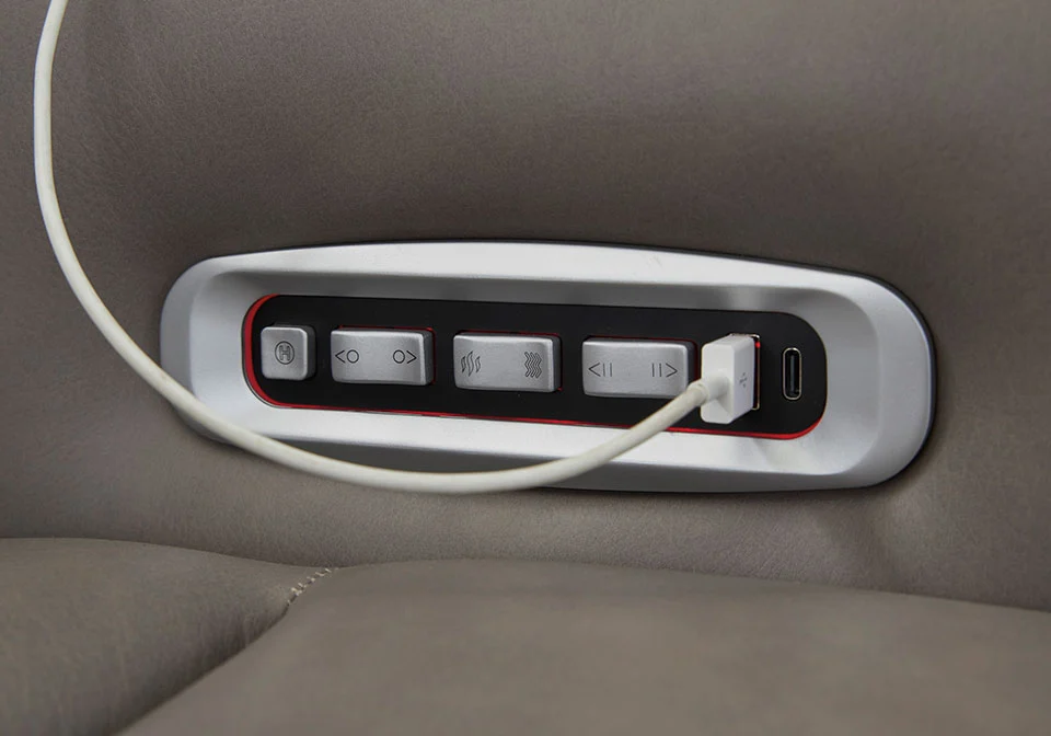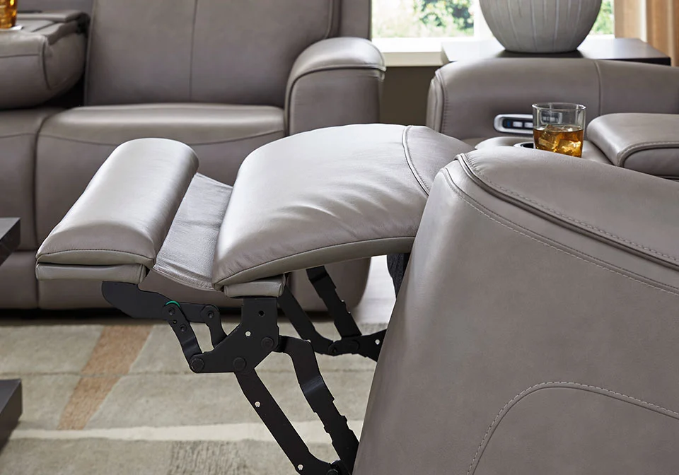 One-touch power control with adjustable positions, Easy View™ adjustable headrest, USB-C fast charging and zero-draw USB-A port. Zero-draw technology only consumes power when the USB receptacle is in use. Zero-gravity mechanism allows optimum reclining comfort with infinite reclining positions at the touch of a button. Extended ottoman for enhanced comfort. Corner-blocked frame with metal reinforced seat. Attached cushions; high-quality foam cushions wrapped in poly fiber. 100% top grain leather covers inside areas such as the back, seat and arm cushions; skillfully matched faux leather covers the remaining areas. Due to its natural origin, real leather can show individual characteristics such as healed scars, growth marks, grain variation and shade variation. Natural variations make each hide unique and do not detract from the wearing qualities of leather. Heat and massage function covers 5 zones: head, neck, upper and lower shoulders and lumbar. Air massage system with automatic 30-minute shutoff feature. Heat in the seat element with automatic 30-minute shutoff feature.