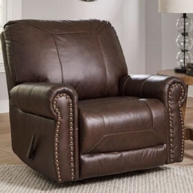 Sporting traditional elements including a roll arm frame with nailhead trim, this recliner provides here-and-now relevance. Mix in this combination of comfort and affordable luxury for a look you’ll love for years to come.