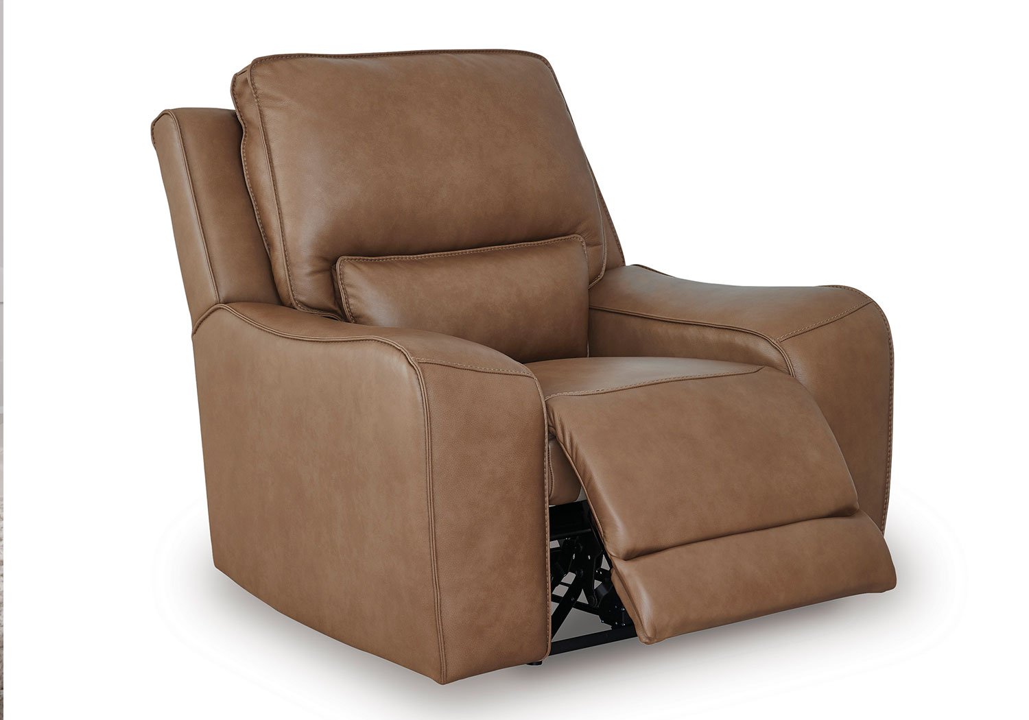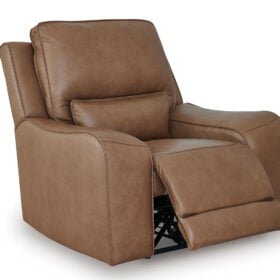 Live and lounge luxuriously. This power reclining sofa brings an ultra-stylish flair to your home’s central hub. Its seating area is wrapped in top-grain leather in a rich caramel coloration, giving you a trend-right look made all the better with high-quality materials. And with the simple push of a button, you can recline or adjust the headrests to find your ideal comfort position.