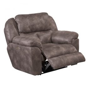 This Ferrington Power Recliner with power headrest by Catnapper Furniture offers a contemporary style upholstered in padded polyester fabric. This Recliner features a lay flat recline feature and comfort coil seating with comfort-gel assuring you maximum relaxation. It is adorned with beautiful decorative luggage stitching.