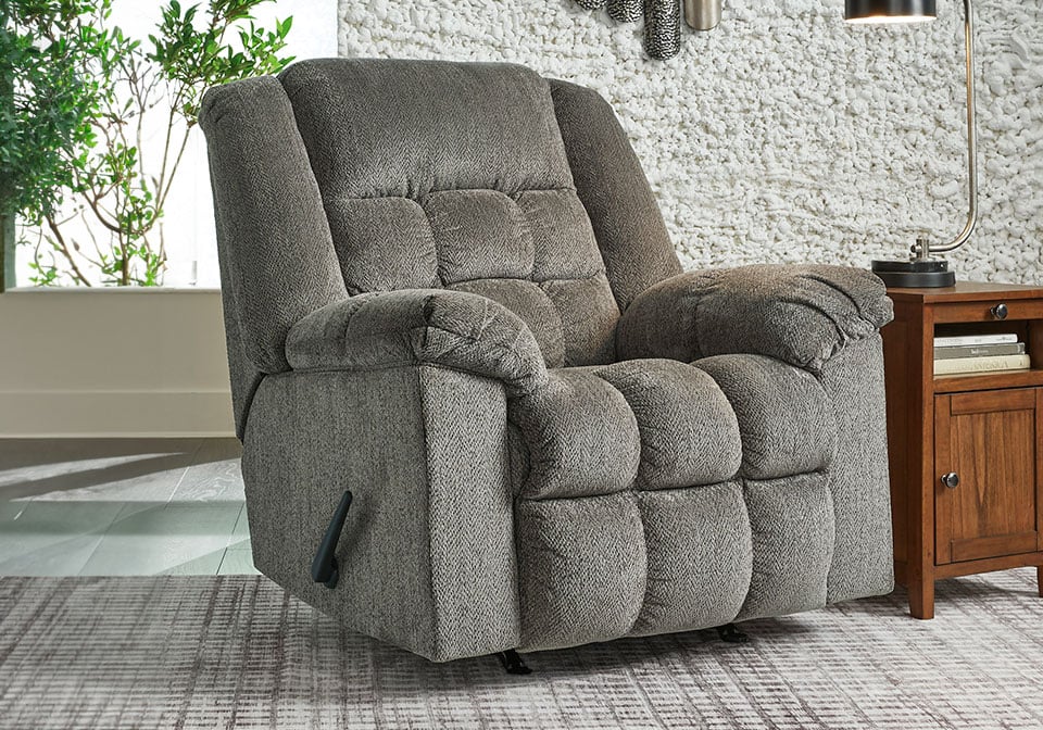 Prioritize comfort while still making a versatile style statement. Complementing a variety of color schemes, this rocker recliner’s supremely plush seating lines you up for hours of leisure. Its one-pull reclining motion places you in optimal TV watching and naptime positions. If you’re reaching for a relaxed living room atmosphere, this chair is ready to provide.