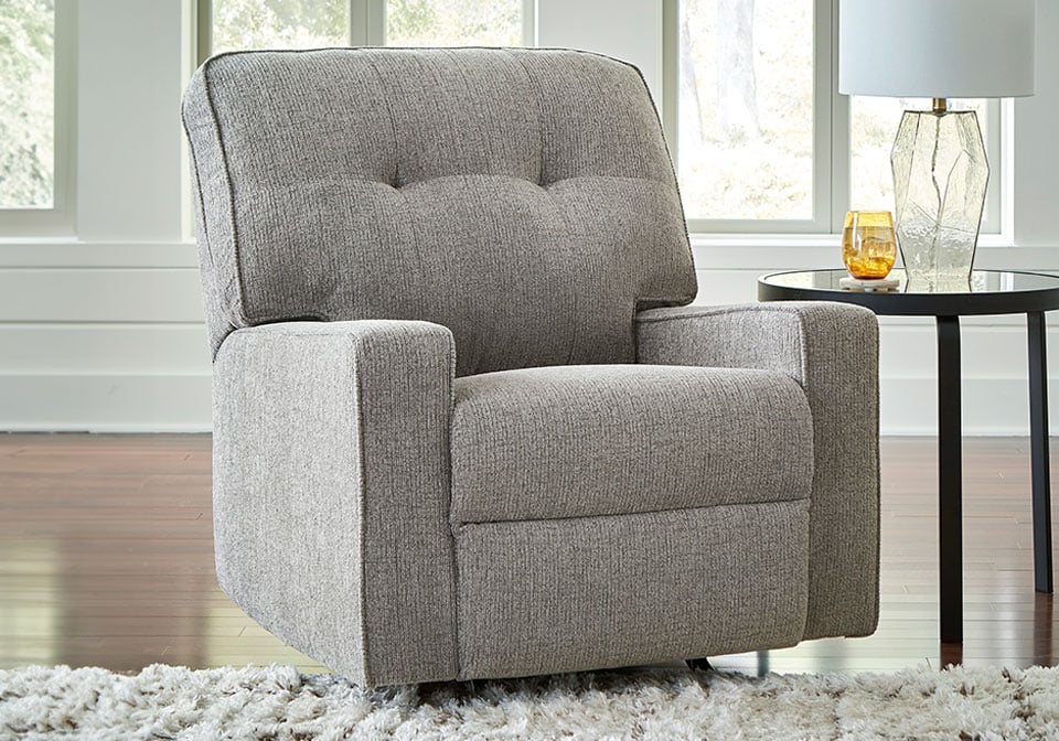 Sincere in its styling, this recliner marries classic function with modern design elements for truly transitional appeal. Its track arms lend a contemporary vibe, while easy pull tab reclining ups the comfort level. And with the recliner’s goes-with-anything neutral upholstery, styling is made simple. All that’s left for you to do is sit back and relax.
