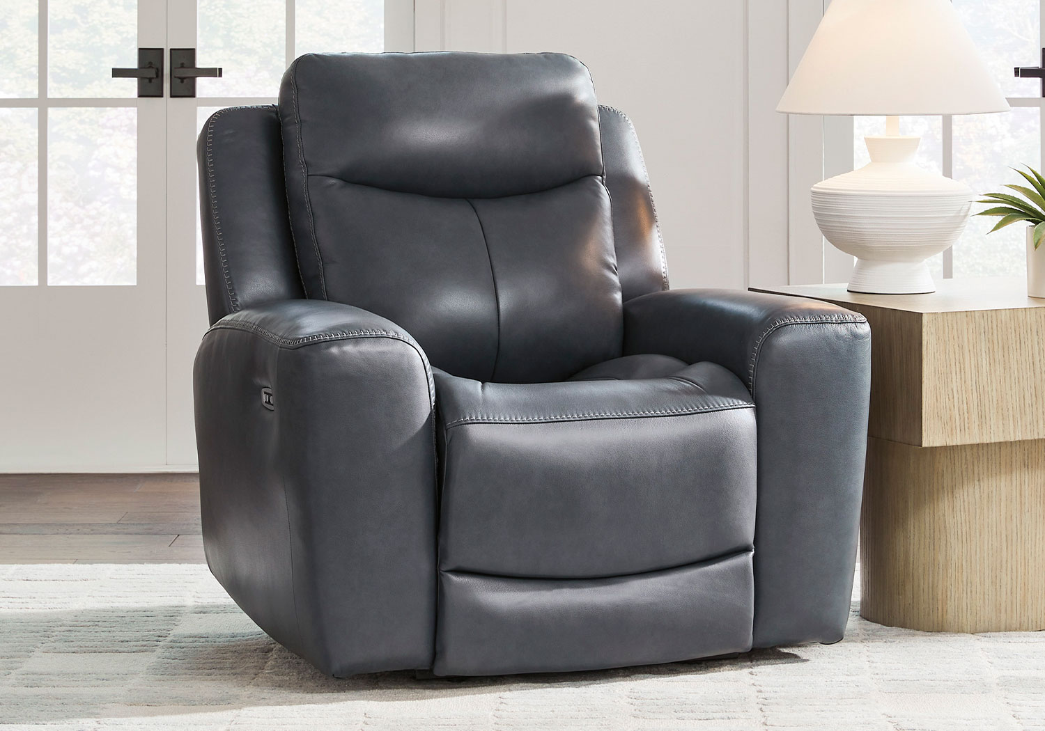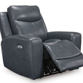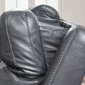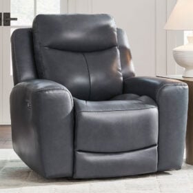 Prepare to be moved. This power recliner combines sleek modern design with all the soothing features you’ve been dreaming of. Wrapped in blue-hued leather and faux leather for affordable luxury, this highly contemporary piece with cozy scoop seating suits your relaxed vibe. Infinite reclining and headrest positions are yours at the touch of a button. It’s the perfect choice for anyone who wants their comfort with a side of style.