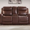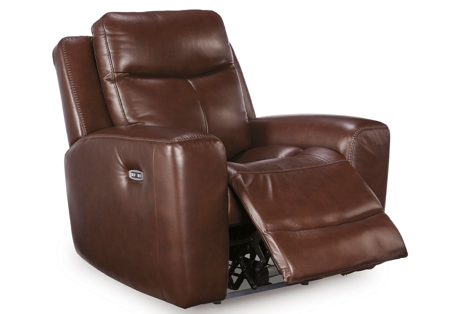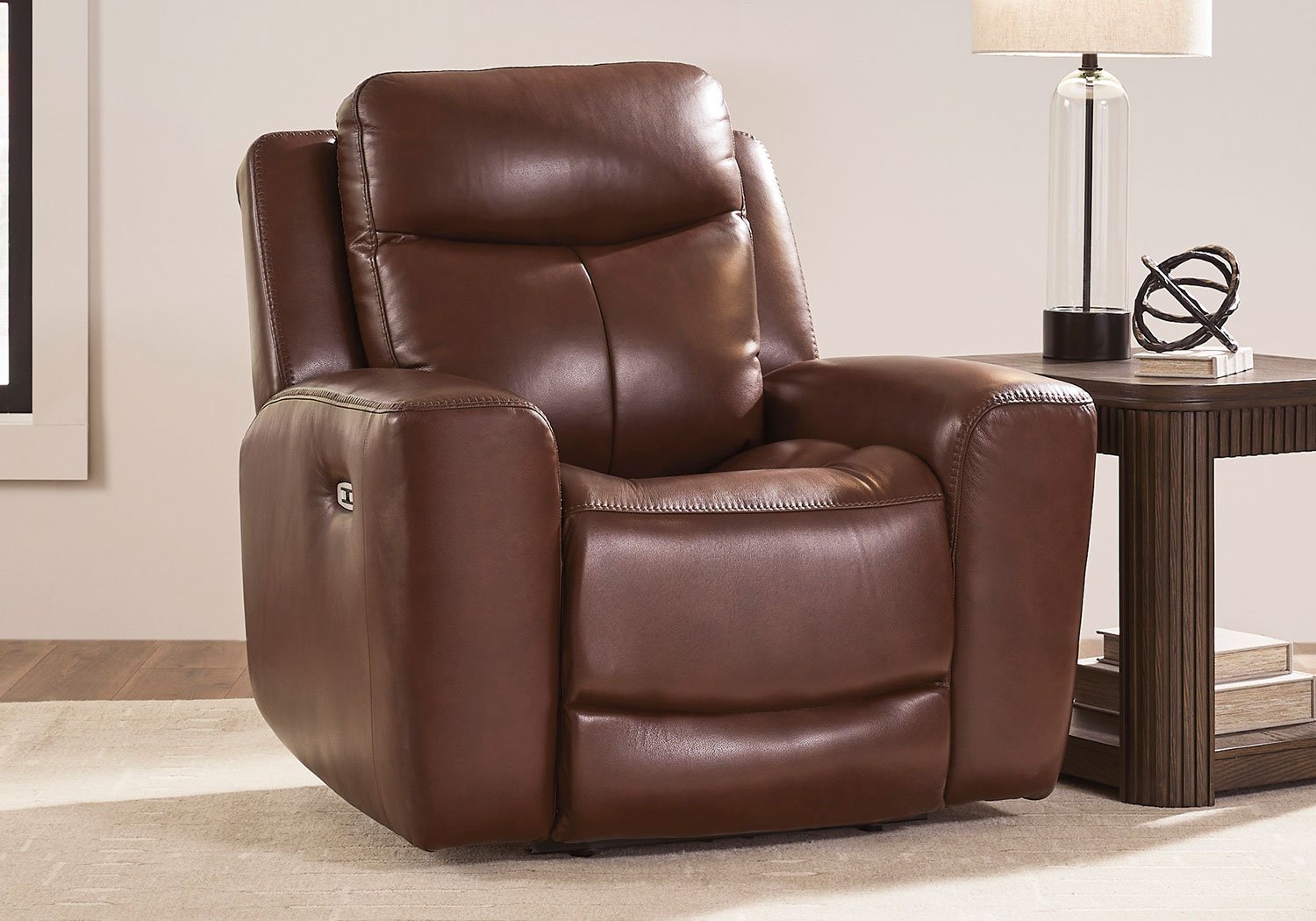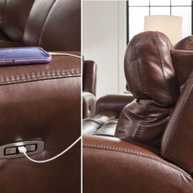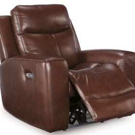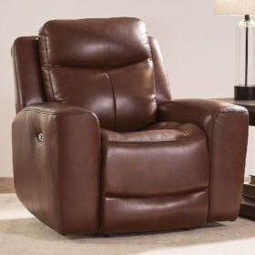Prepare to be moved. This power recliner combines sleek modern design with all the soothing features you’ve been dreaming of. Wrapped in mahogany leather and faux leather for affordable luxury, this highly contemporary piece with cozy scoop seating suits your relaxed vibe. Infinite reclining and headrest positions are yours at the touch of a button. It’s the perfect choice for anyone who wants their comfort with a side of style.