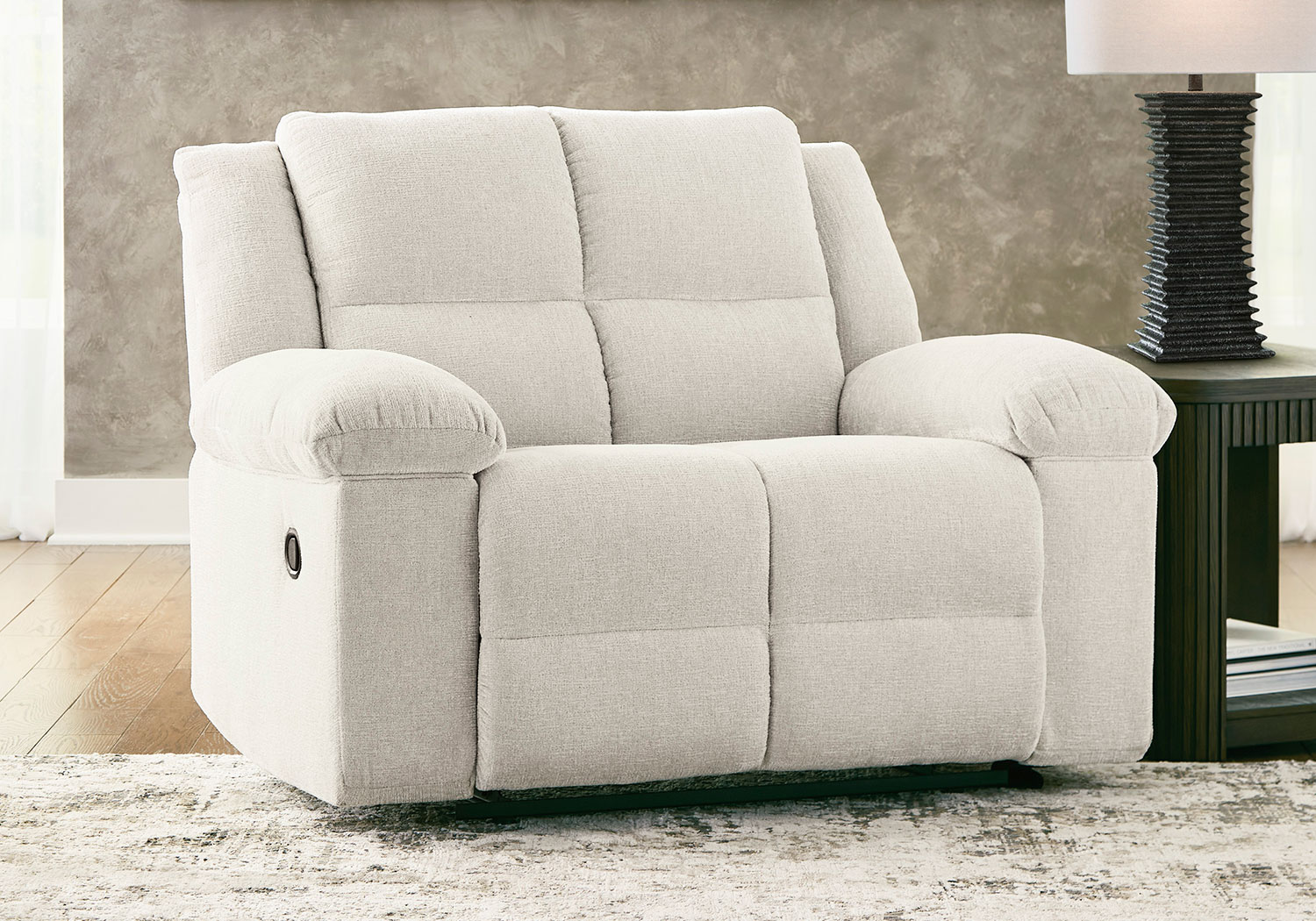 Pull tab reclining for full body comfort. Reinforced frame and metal seat box provide added stability. Attached cushions. High-quality foam cushions wrapped in poly fiber. Polyester upholstery. Next-Gen Nuvella is a performance fabric that is soft, easy to clean, stain-resistant and durable. Zero wall recliner design requires minimal space between wall and chair back.