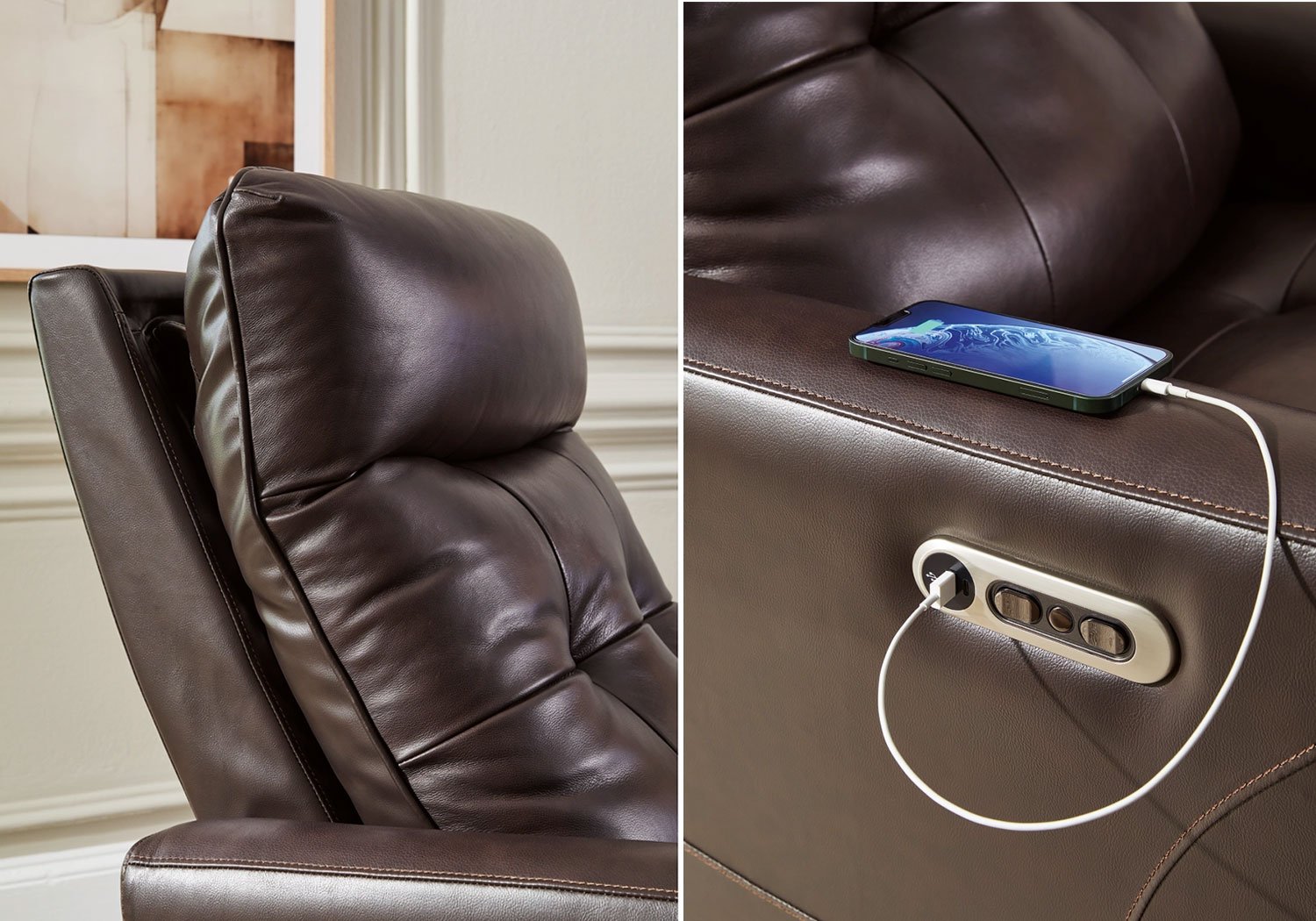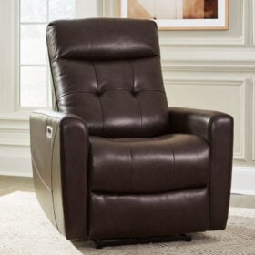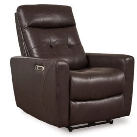 We’ve made it easy to indulge in extraordinary comfort and style with the Pisgham power recliner. When it’s time to unwind, the one-touch control puts the perfect position at your fingertips. Tufted upholstery in the lumbar section delivers additional comfort for your lower back, while USB charging keeps your devices powered up as you chill out. And let’s not forget its contemporary chocolate brown hue, which, looks right at home in any decor. Life just got a whole lot sweeter.