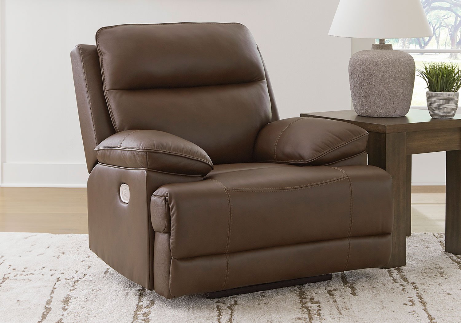 Get ready to indulge in pure bliss. With this power recliner, you’ll experience unparalleled comfort as you effortlessly recline. The Easy View™ adjustable headrest puts you in the driver’s seat for optimal TV viewing. And the recliner’s sumptuous upholstery and impeccable stitching bring an ultra-cool touch—perfect for your modern or casual setting.