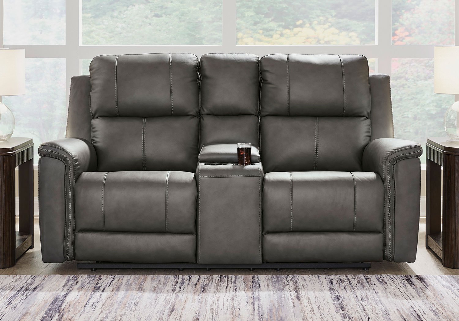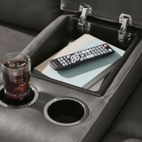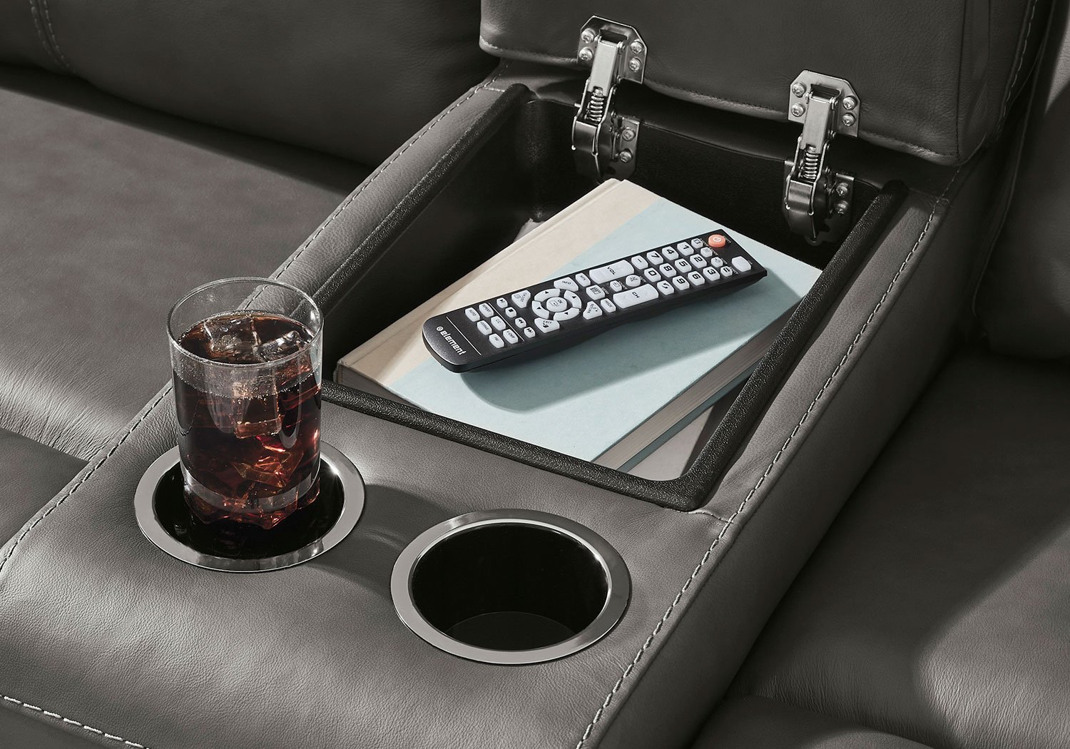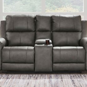 Are you ready to experience next-level relaxation? This power reclining loveseat with console combines supple leather and faux leather upholstery with smart features that make unwinding effortless. With just one touch, you can adjust your position while the power headrest keeps you perfectly aligned for reading or binge-watching your favorite shows. The Zero³ reclining requires minimal space between wall and chair back while delivering fully supported, fully reclined comfort at the touch of a button. Thoughtfully designed with sculptural padded arms and built-in USB charging, this spacious piece will be your new favorite spot to recharge—both yourself and your devices. And how about those handy cup holders?