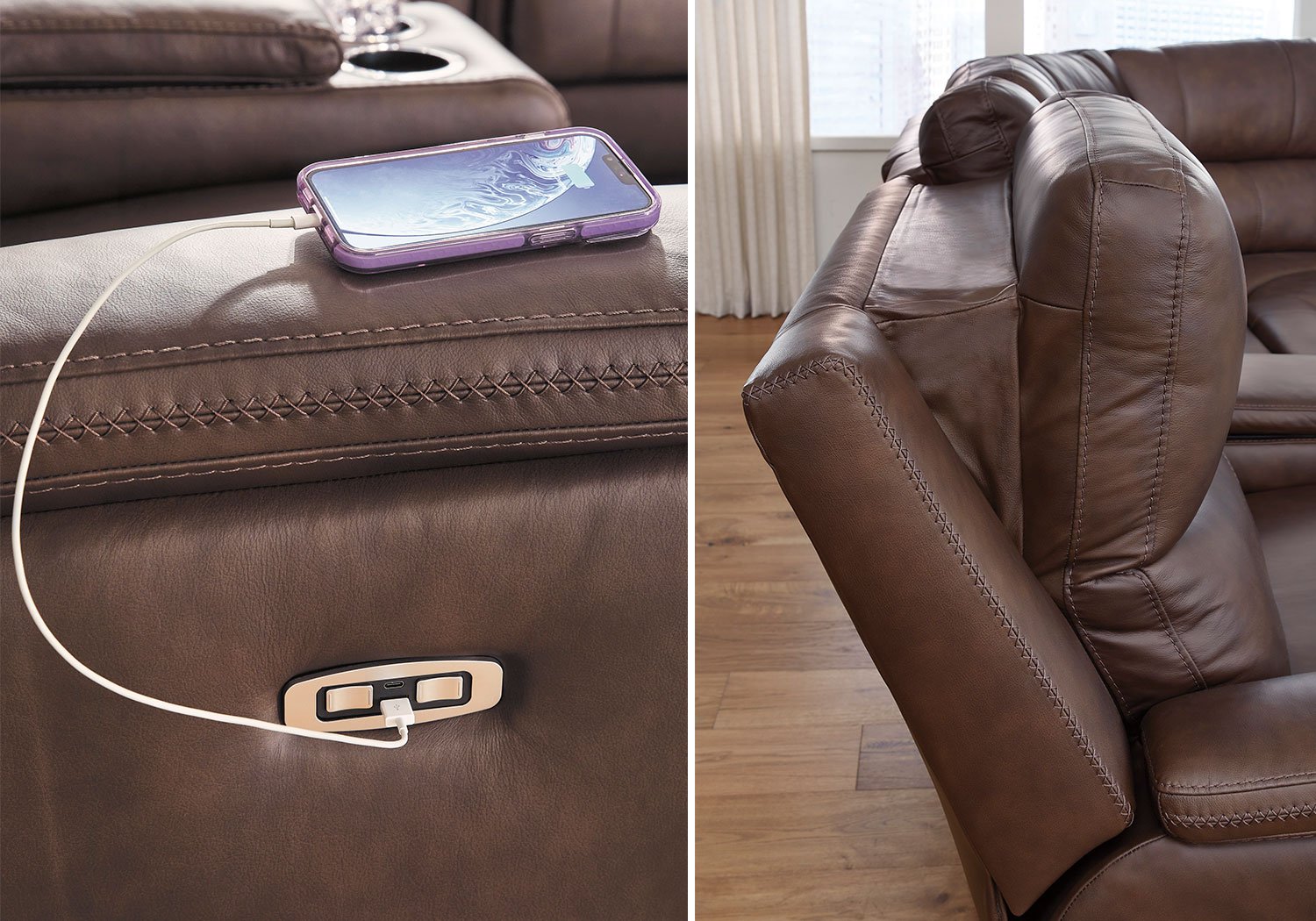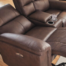 Are you ready to experience next-level relaxation? This power reclining loveseat with console combines supple leather and faux leather upholstery with smart features that make unwinding effortless. With just one touch, you can adjust your position while the power headrest keeps you perfectly aligned for reading or binge-watching your favorite shows. The Zero³ reclining requires minimal space between wall and chair back while delivering fully supported, fully reclined comfort at the touch of a button. Thoughtfully designed with sculptural padded arms and built-in USB charging, this spacious piece will be your new favorite spot to recharge—both yourself and your devices. And how about those handy cup holders?