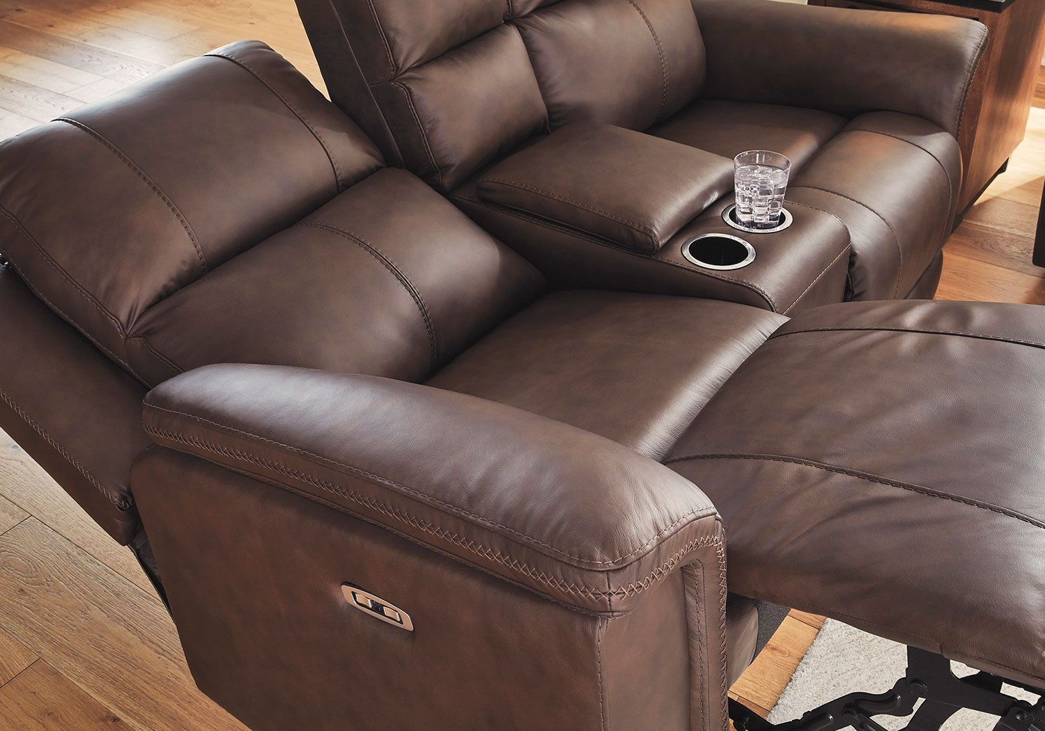 Bleckley Espresso Power Reclining Love Seat Console