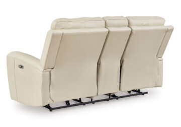 Focus on function. This practical power reclining loveseat with console balances contemporary character and irresistible comfort. Its affordable, expertly matched leather and faux leather upholstery keeps your style up to speed without breaking the bank. Reclining at the touch of a button, the loveseat plays well in relaxed, luxe seating areas made for quality time.