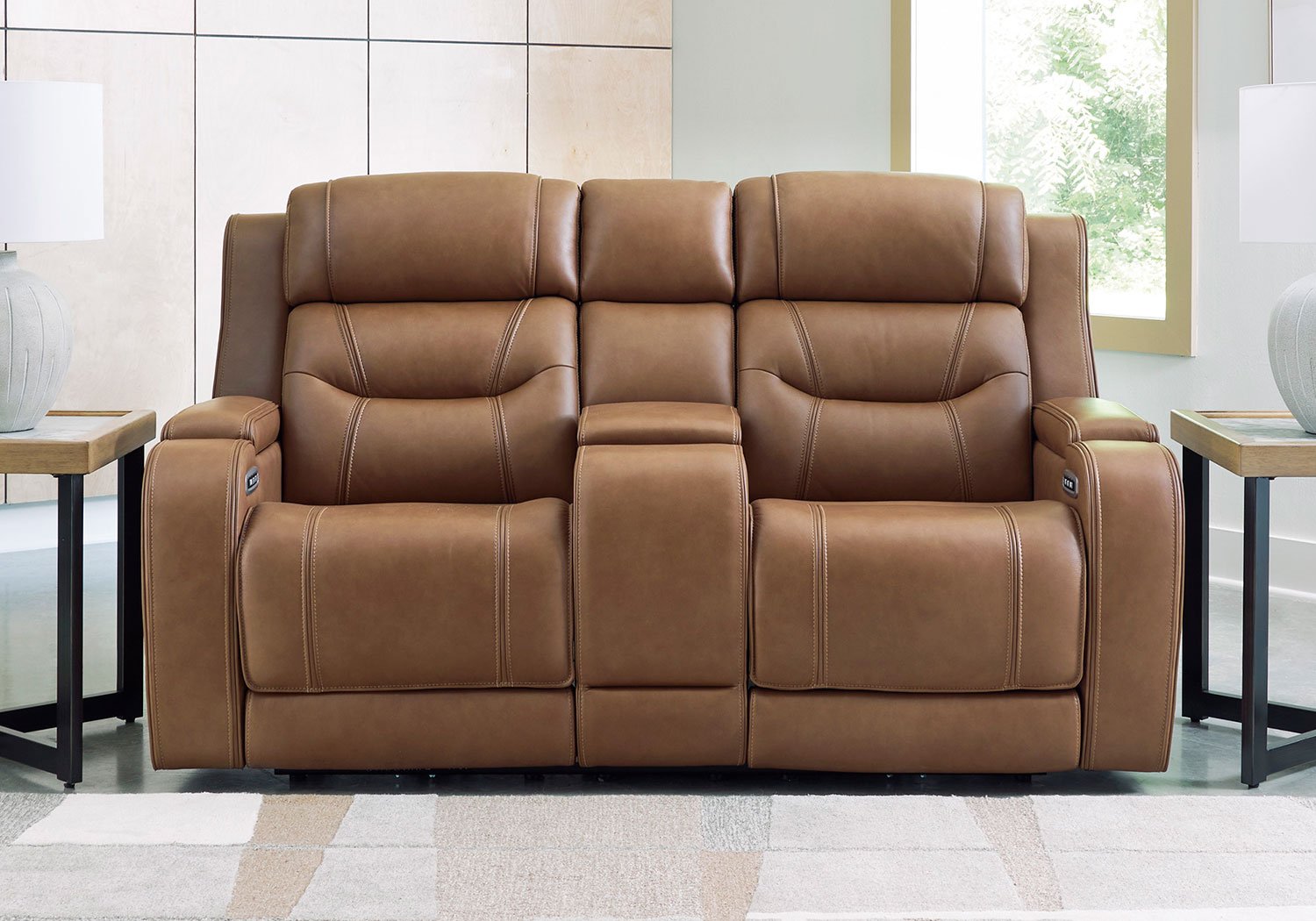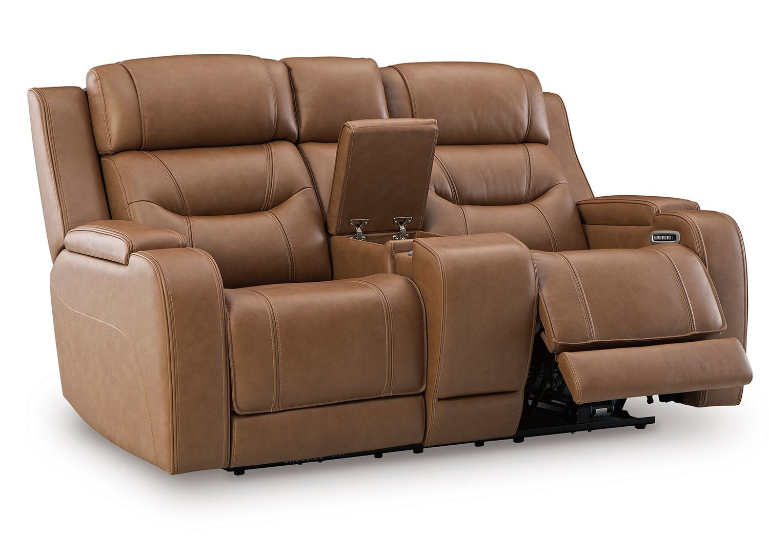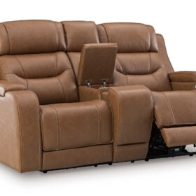 Knightington Caramel Power Reclining Love Seat Console