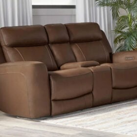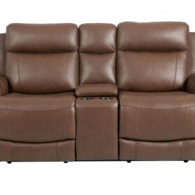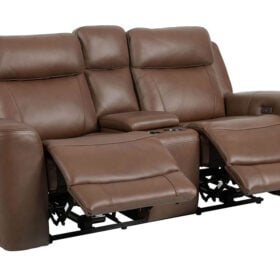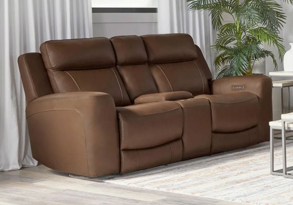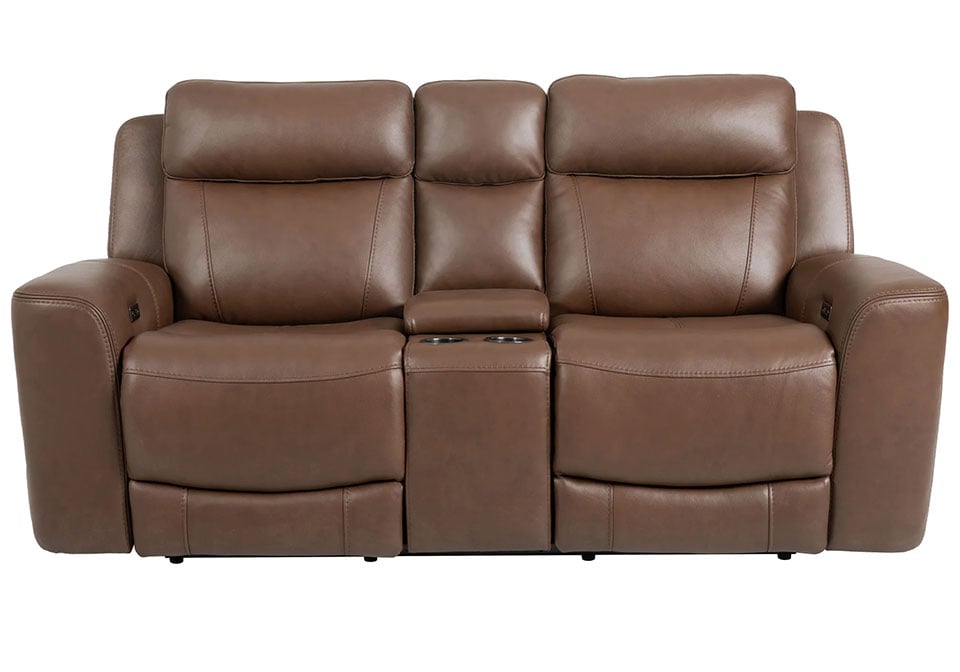 Upholstered in smooth, in Genuine leather. Power recline & power headrests (P2 functionality). Deep, supportive seating with plush armrests and back cushions. Built-in center console with cup holders and hidden storage. Sleek modern design with a neutral tone that suits any décor. Ideal for media rooms, living rooms, and open-concept spaces. Due to its natural origin, real leather can show individual characteristics such as healed scars, growth marks, grain variation and shade variation. Natural variations make each hide unique and do not detract from the wearing qualities of leather.
