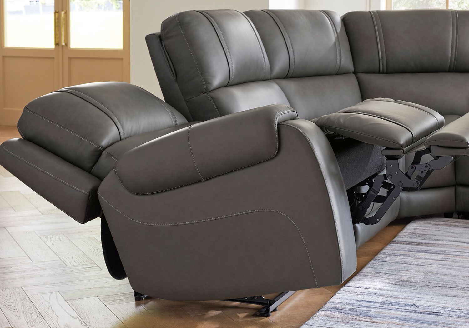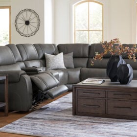 Isn’t it time to discover a whole new level of relaxation? This power reclining sectional is a divine merger of fabulous function and sleek transitional style. One-touch reclining, adjustable headrests and USB charging, coupled with supple leather and skillfully matched faux leather, kick your leisure level up several notches. And the indulgence doesn’t end there; heat and massage functions target multiple zones from head to toe. This is more than just a sectional—it’s your personal comfort command center.