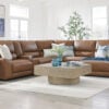 Live and lounge luxuriously. This power reclining sectional with chaise brings an ultra-stylish flair to your home’s central hub. Its seating area is wrapped in top grain leather in a rich caramel color, giving you a trend-right look made all the better with high-quality materials. And with the simple push of a button, you can adjust the headrests or recline to find your ideal comfort position.
