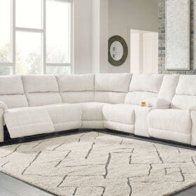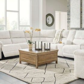 This power reclining sectional complements your contemporary cozy space. Bold block arms accentuated with form-fitting padding lend a high-style silhouette. An ample seating area invites you to sprawl during binge watches and relaxed reading hours alike. And with reclining at the press of a button, this sectional proves chic design and superb comfort go hand in hand.