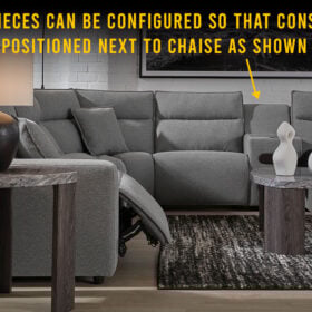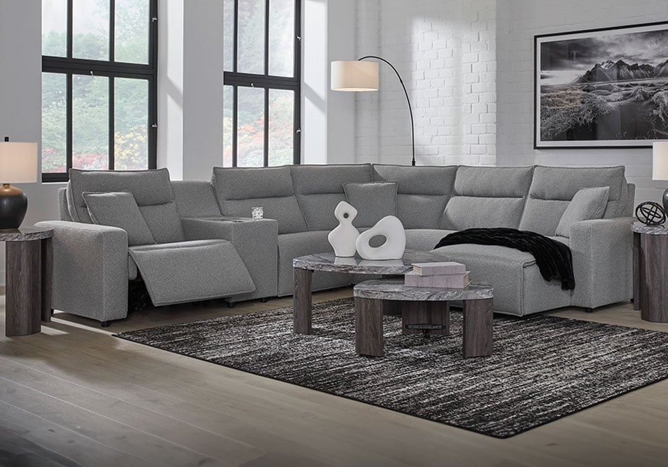 Looking cool and contemporary is great. But when it comes down to it, you’re all about low-maintenance lounging. With the performance fabric on this sectional with chaise, cleaning spills is a breeze. Its customizable modular design caters to your ever-changing needs, whether you need extra seating when guests drop by or you’re setting up for family movie night. And built-in speakers with wireless connectivity turn your living room into an entertainment hub. So grab some popcorn, settle in and enjoy the show.