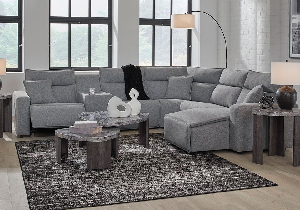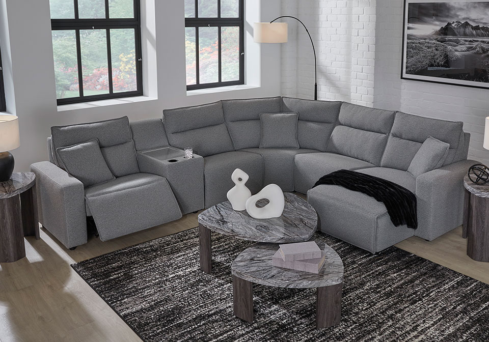 Modmax Salt & Pepper 6pc. Power Reclining Sectional w/ Audio Console