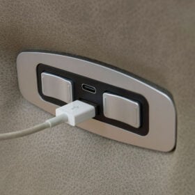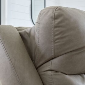 Experience ultimate comfort with this power reclining sectional. Generously cushioned with plush bustle back styling and pillow top track arms, it’s wrapped in a richly neutral upholstery that’s oh-so soft. Jumbo stitching gives the sectional added definition. The one-touch power control and USB charging take the pleasure of reclining to a higher level, while a console with storage and dual cup holders marries function with great form.