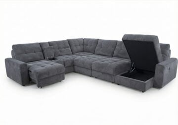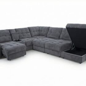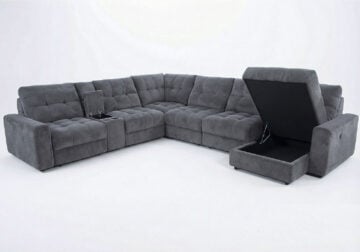 Experience ultimate versatility with this power sliding sectional, featuring a left arm facing sliding chaise, two armless chaises, and right side storage chaise. Plush tufted cushions, & integrated console with USB. Comfort delivered in a modern style and relaxation for everyone.