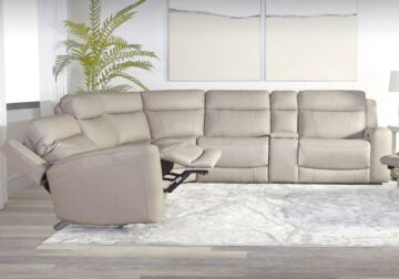 Upholstered in smooth, in Genuine leather. Power recline & power headrests (P2 functionality). Deep, supportive seating with plush armrests and back cushions. Built-in center console with cup holders and hidden storage. Sleek modern design with a neutral tone that suits any décor. Ideal for media rooms, living rooms, and open-concept spaces. Due to its natural origin, real leather can show individual characteristics such as healed scars, growth marks, grain variation and shade variation. Natural variations make each hide unique and do not detract from the wearing qualities of leather.