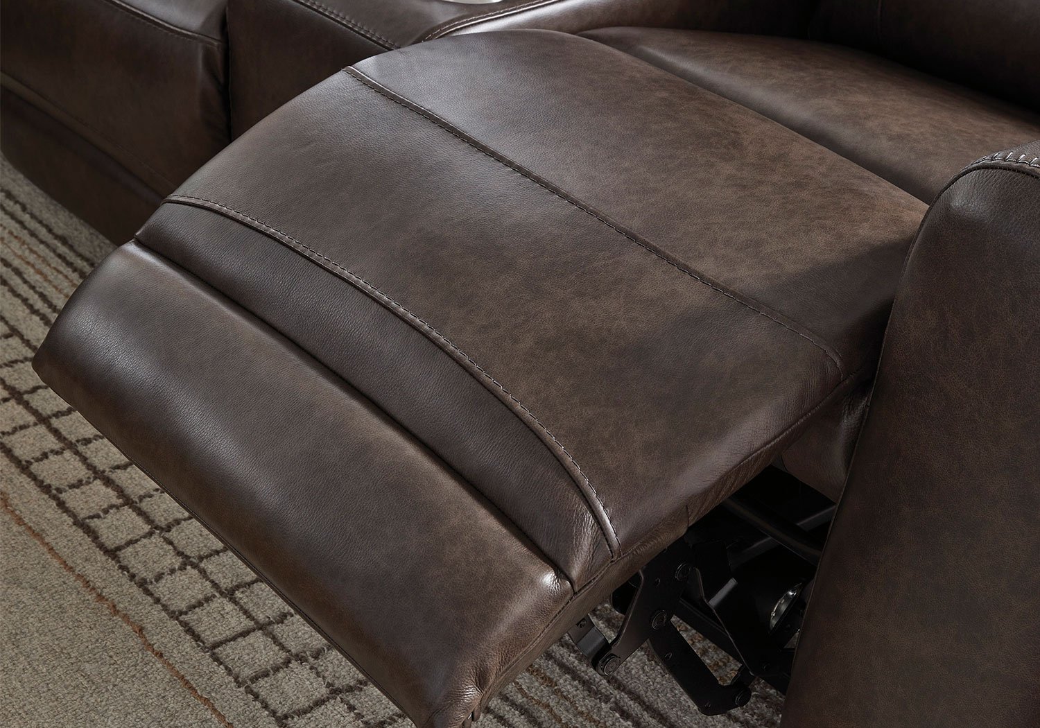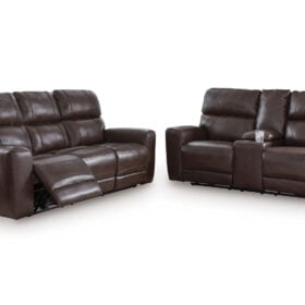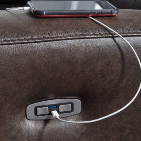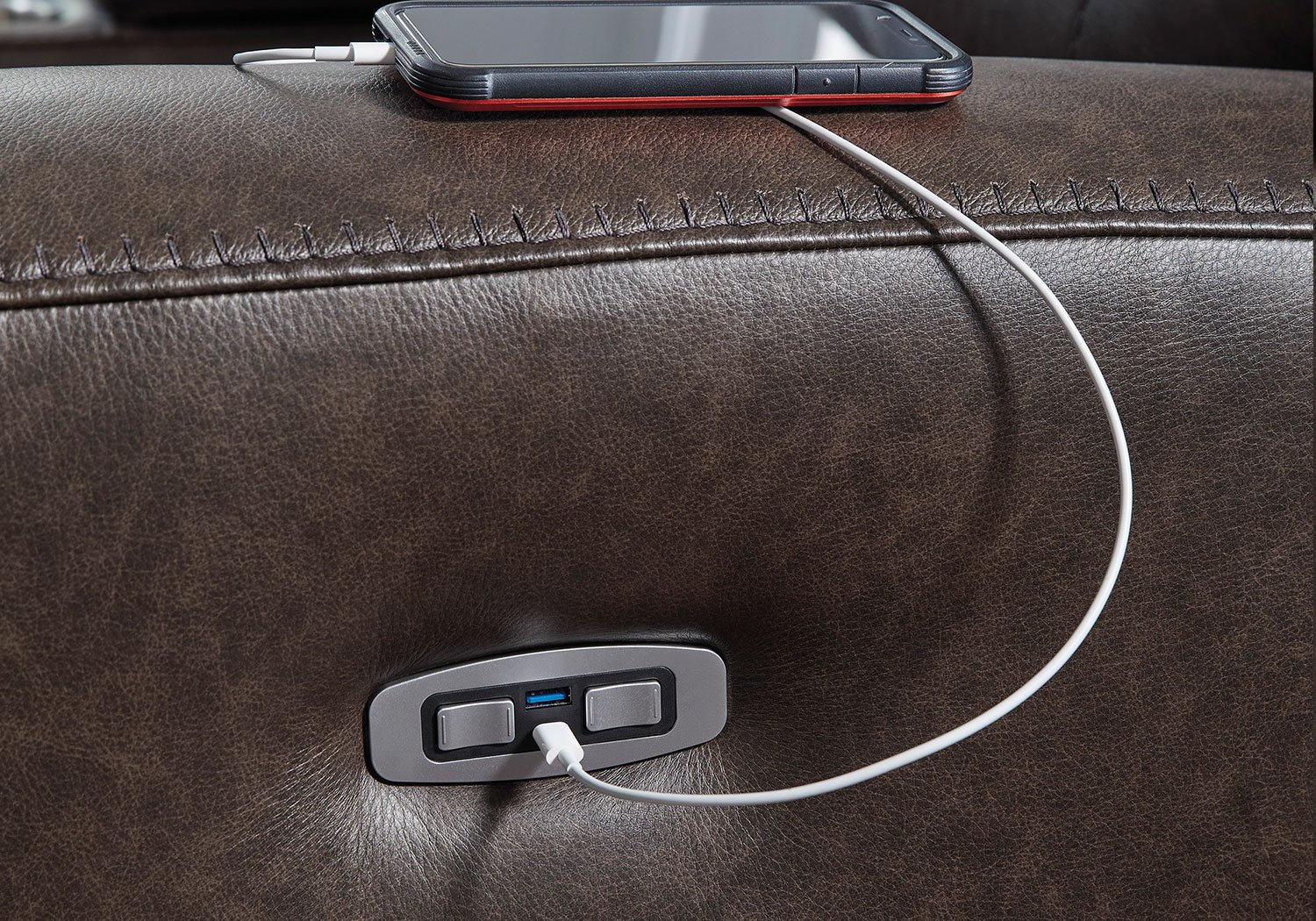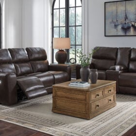 Versatile style teams up with everyday convenience to create this power reclining sofa set. Settle into the sleek leather seating area and effortlessly recline with one-touch controls. Need some extra ambiance? Wireless speakers in the drop-down table make entertainment more immersive. And with the addition of USB charging, you can keep go-to devices close as you lounge. Outfitted in a goes-with-anything neutral hue, it’s the perfect blend of chic transitional aesthetics and modern function.